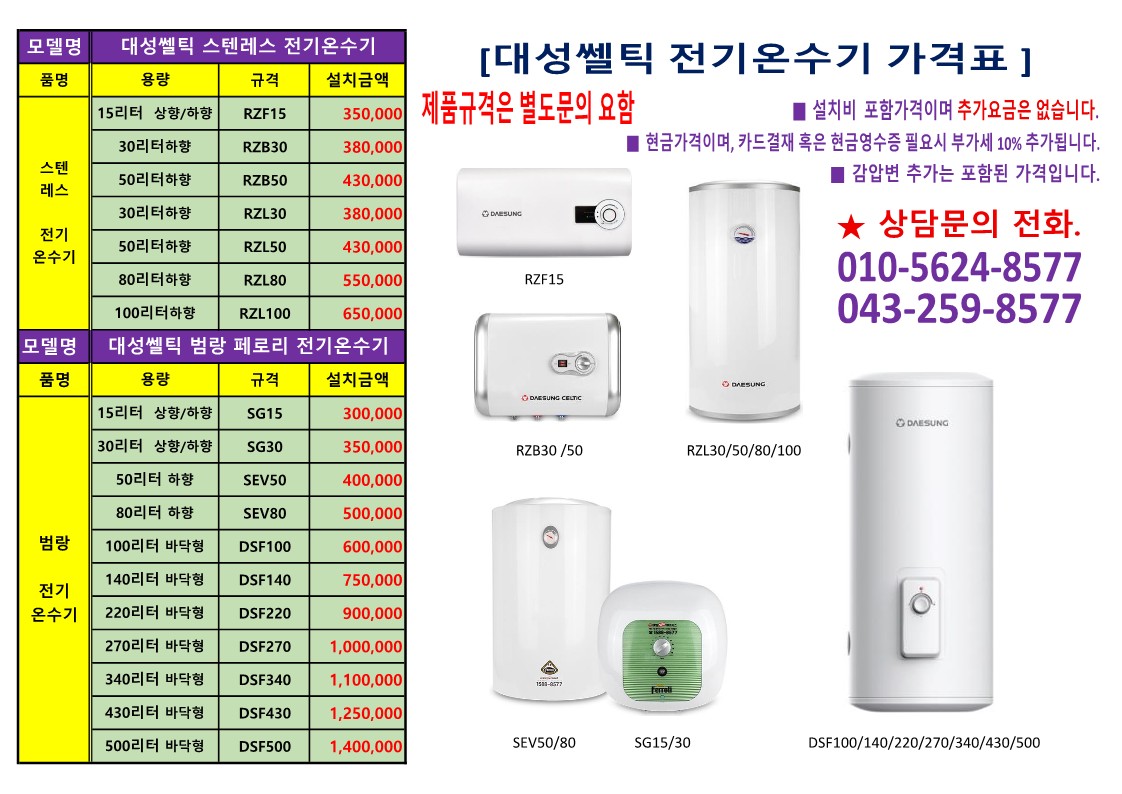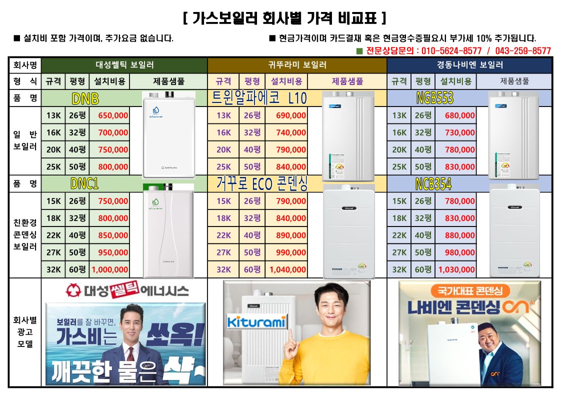 칼로리 규격에 따라서 설치비용이 달라집니다.
